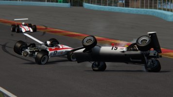 However, the car proved to be a death trap. On just the third lap, Schlesser crashed heavily at the Six Frères turn, and the car exploded after rolling multiple times with a full tank of fuel onboard, killing the local hero instantly in just his third Grand Prix.